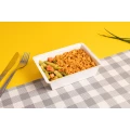 Ingredientes: Carne de frango (peito de frango), arroz branco tipo 1, abobrinha, cenoura, brócolis, alho, sal e colorau. ALÉRGICOS: PODE CONTER SOJA. NÃO CONTÉM GLÚTEN.
